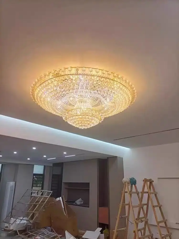 Luxury Continental Circular Golden Living Room Lobby Restaurant Crystal Hotel Decoration Elegant Ceiling Lamp Ceiling Chandelier Fast logistics and tight packaging. The actual crystal lamp is even more stunning, with excellent texture and a beautiful mood when lit up!