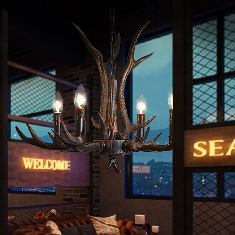 Black Resin Antler Candelabra Chandelier – Rustic 4/6/8-Light Dining Pendant