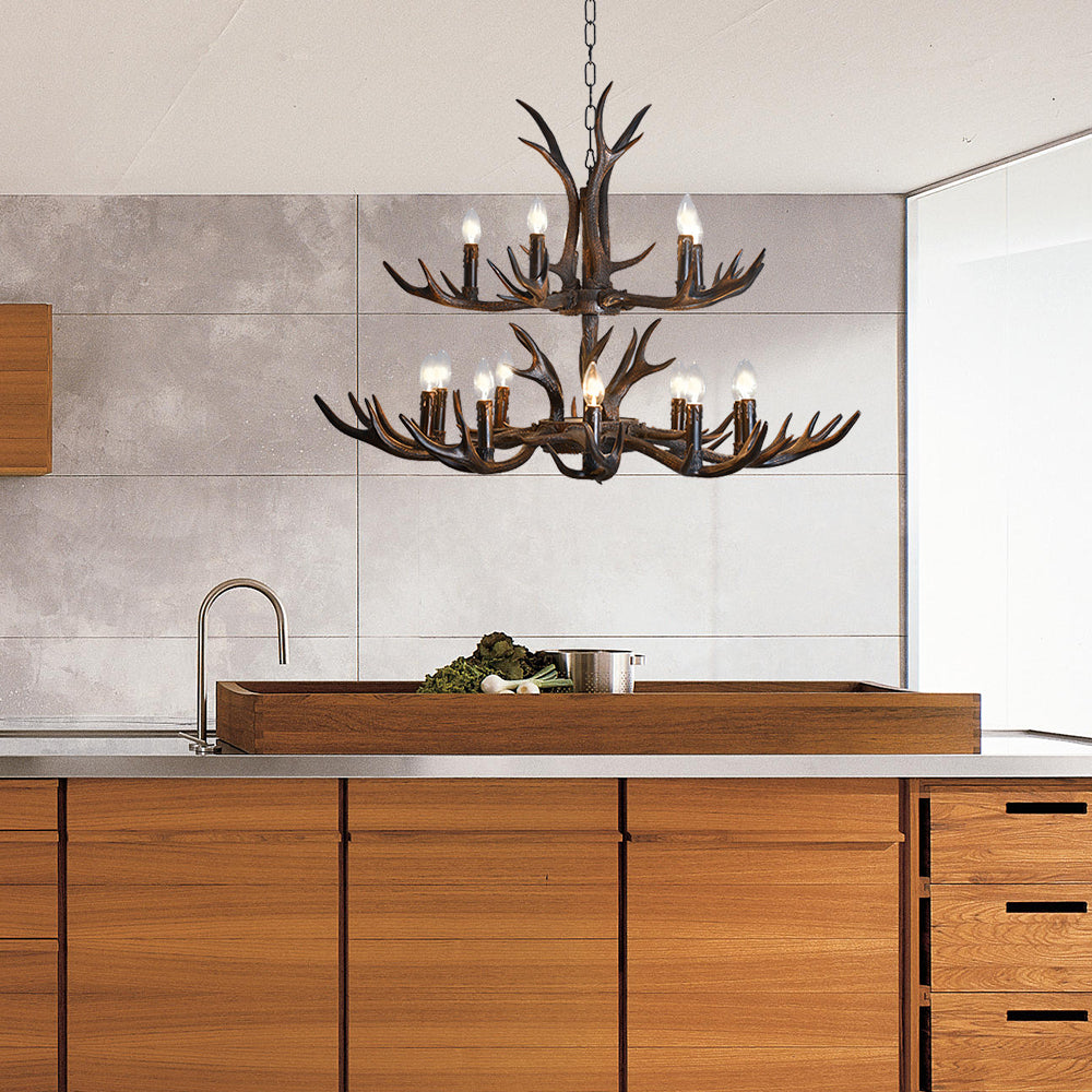 A striking chandelier that pairs traditional candelabra elegance with rugged deer antler styling. Crafted from high-quality resin in a bold black finish, it creates a dramatic focal point for dining rooms, living rooms, and rustic-inspired interiors. Available in multiple sizes and light counts to suit different spaces.