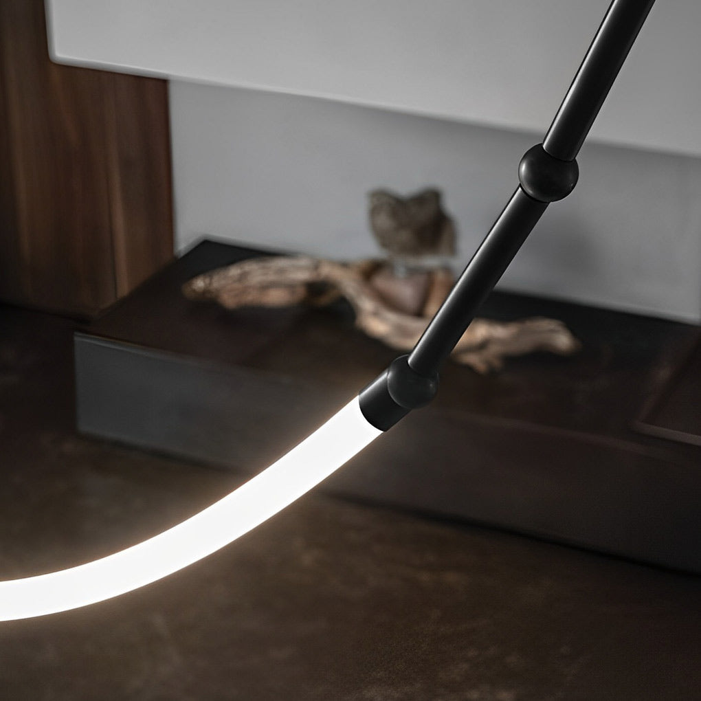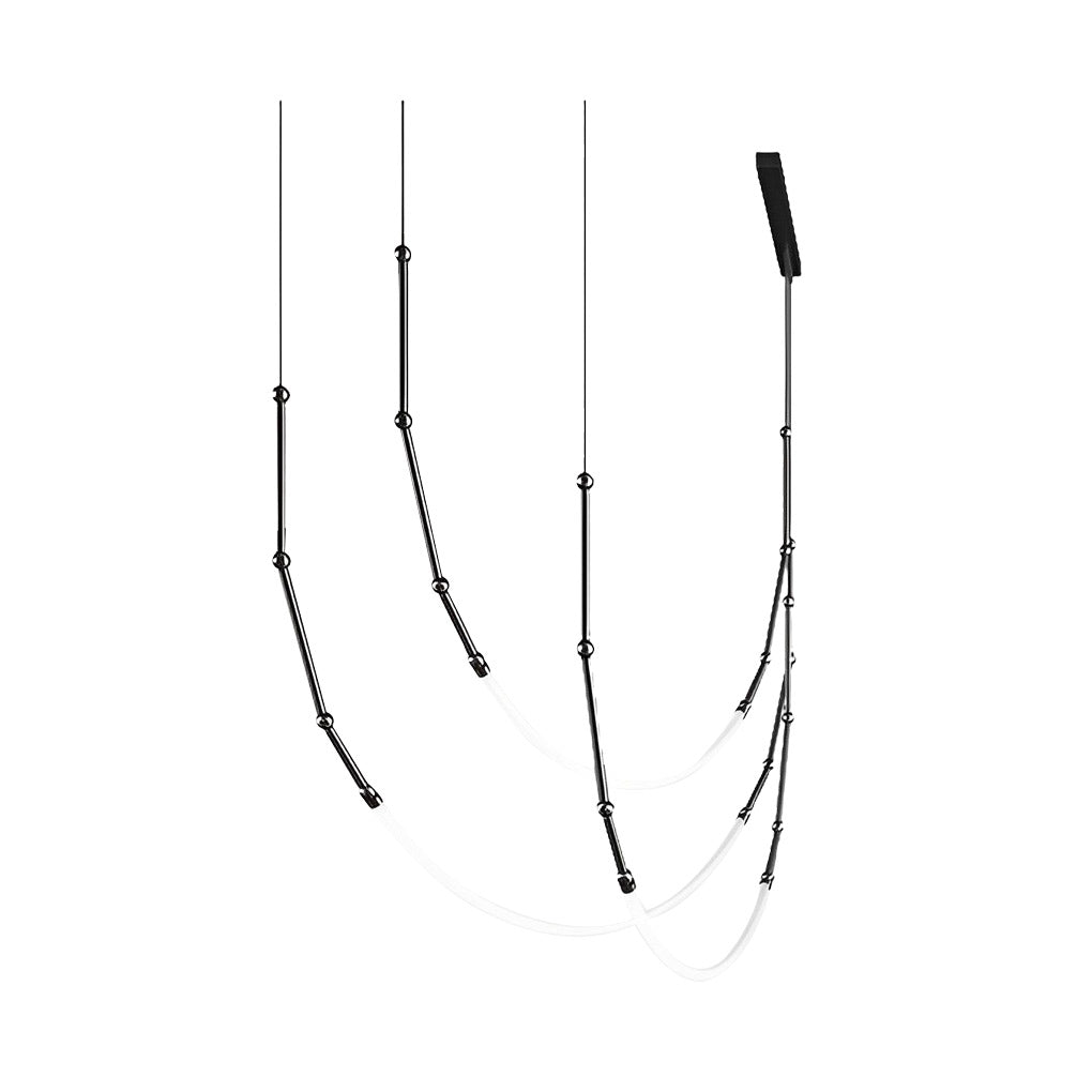 This modern staircase chandelier features a bold linear design inspired by the simplicity of bamboo knots. Built with a durable black iron frame and polished finish, it offers both strength and contemporary elegance. The adjustable 79" wire allows a variety of hanging heights and creative arrangements, making it ideal for staircases, lofts, and double-height interiors. Its integrated LED light delivers bright yet soft illumination for a welcoming, artistic ambiance.