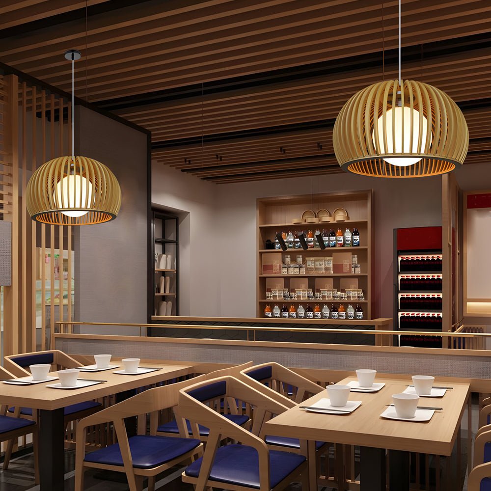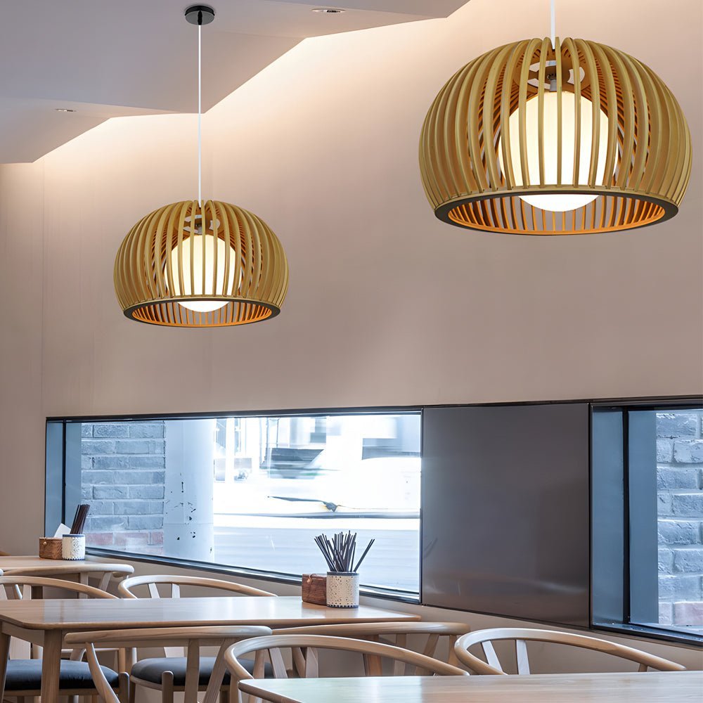 Hemispherical Wood Birdcage Glass Ball Shade Creative Modern Chandelier