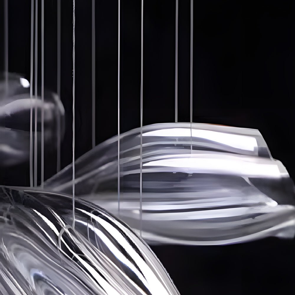 An elegant chandelier crafted from stainless steel and handcrafted art glass, designed to illuminate and adorn interiors with luxurious charm. The thickened glass petals feature a smooth texture and exceptional light transmittance, producing a gentle, flowing effect reminiscent of water waves. Perfect for both contemporary and classic settings, it adds warmth and romance to any room.