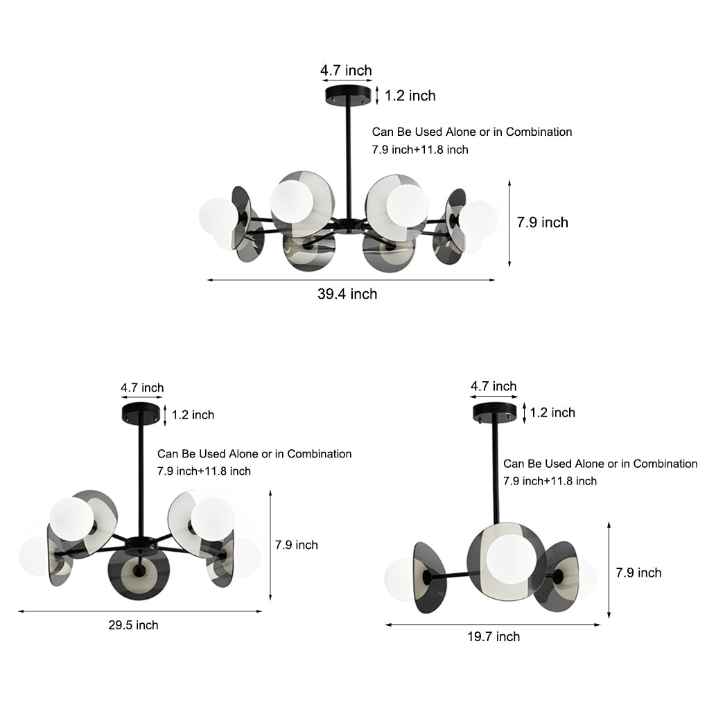 8 Light: 39.4" diameter x 7.9" height, 19.84 lb