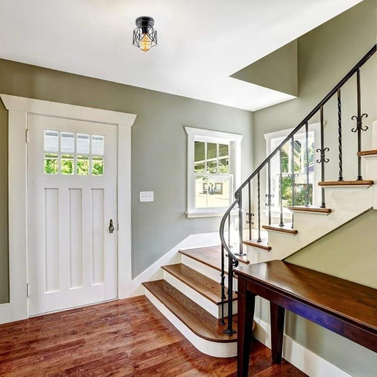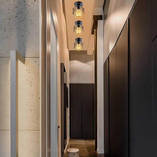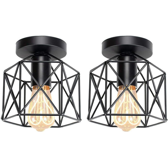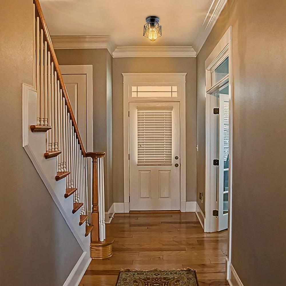 This traditional semi flush mount ceiling light combines a sturdy wire frame lantern design with classic black finish to bring a timeless country charm to outdoor and indoor spaces. Made from high hardness metal for long lasting durability, it pairs well with LED or incandescent bulbs to provide bright, efficient downlighting for entryways, corridors, and kitchens.