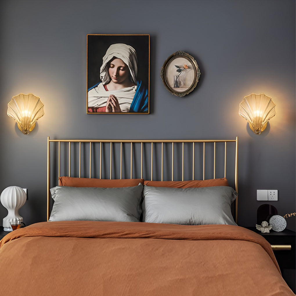 • Bring elegance and warmth to your interiors with the Creative Fan Shaped Glass Wall Sconce. Designed with a delicate glass shade and a brass body refined through multiple processes, this wall lamp combines durability with minimalist Nordic charm.