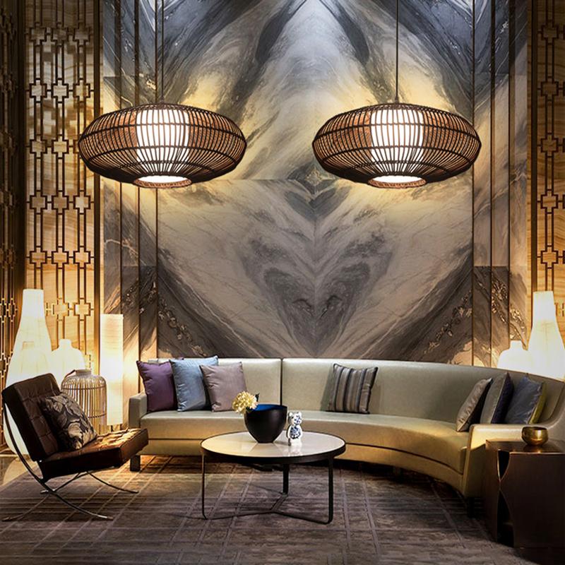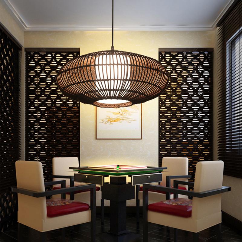 Short Circular Dark Brown Bamboo Pendant Light Farmhouse Kitchen Lighting