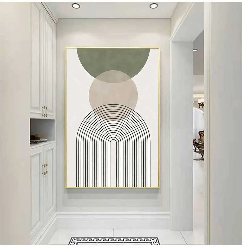 Sage Green Abstract Geometric Botanical Canvas Wall Art