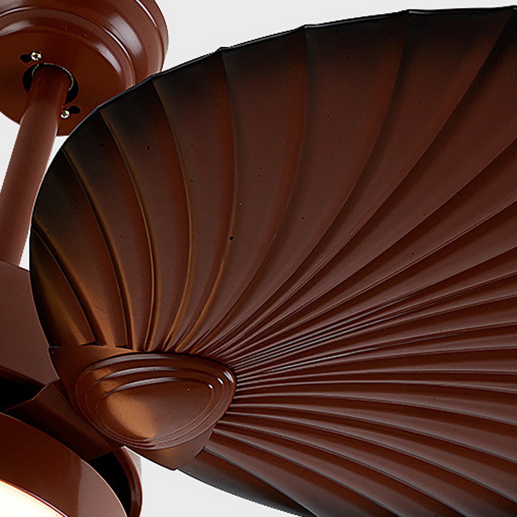 Inspired by nature, this antique ceiling fan lamp features banana leaf–shaped blades that add a touch of retro charm to any space. Designed with an all-copper motor, it ensures stable, quiet performance while reducing resistance for long-lasting durability.