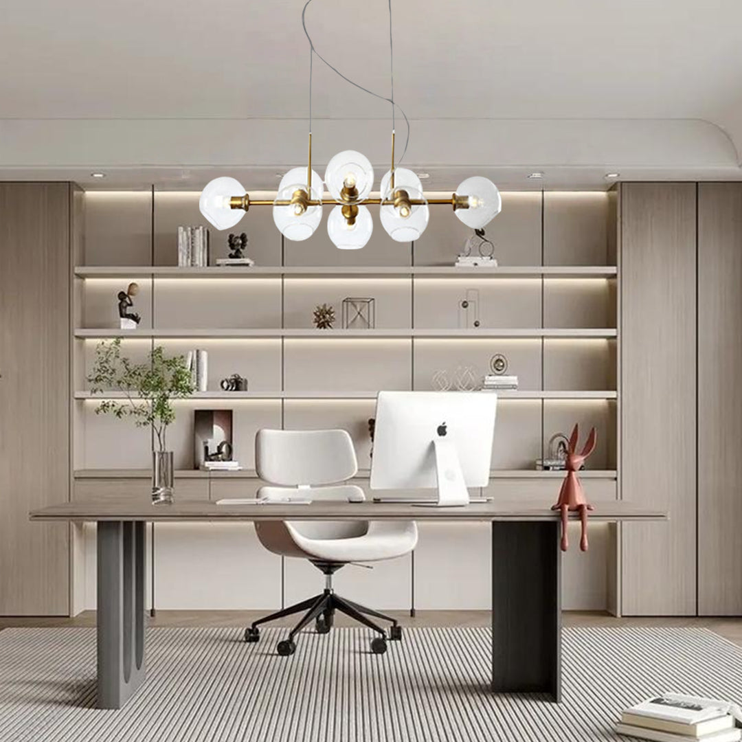 • Material & Finish: Metal frame with painted and electroplated finish; clear glass bubble shades