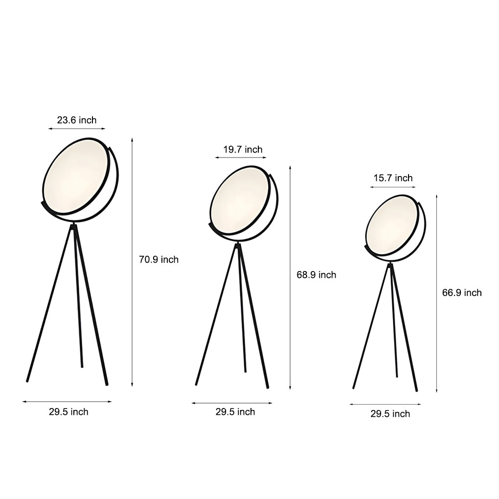 • A modern tripod-style floor lamp designed with a sleek black metal frame and a white acrylic disc shade. Inspired by studio lighting, it features a rotatable 360° head that allows directional lighting while maintaining a minimalist aesthetic. The built-in LED light source provides bright warm white illumination, diffused for a soft and comfortable glow. With its bold tripod base and adjustable design, this lamp enhances living rooms, bedrooms, or semi-formal spaces with both style and function.