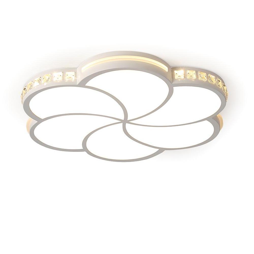 • This modern flush mount ceiling light features a flower-shaped design with crystal-like detailing, creating a decorative and stylish focal point. Crafted from durable metal with a painted finish, it is resistant to scratches, easy to maintain, and offers excellent light transmission. The integrated LED system provides energy-efficient performance with dimmable functionality, giving you versatile lighting options for any room in your home.