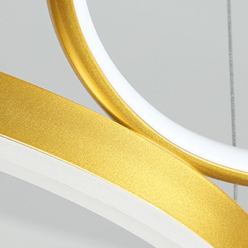 • This modern chandelier takes inspiration from the geometric circle and crown motif, resulting in a striking and artistic design. Crafted from high-quality aluminum with an iron base, it combines durability with elegance. The crown-shaped frame creates a unique decorative presence while offering warm, comfortable, and eye-catching illumination. With integrated dimmable LED lighting and remote control functionality, this chandelier provides versatile lighting options that enhance both residential and modern commercial interiors.