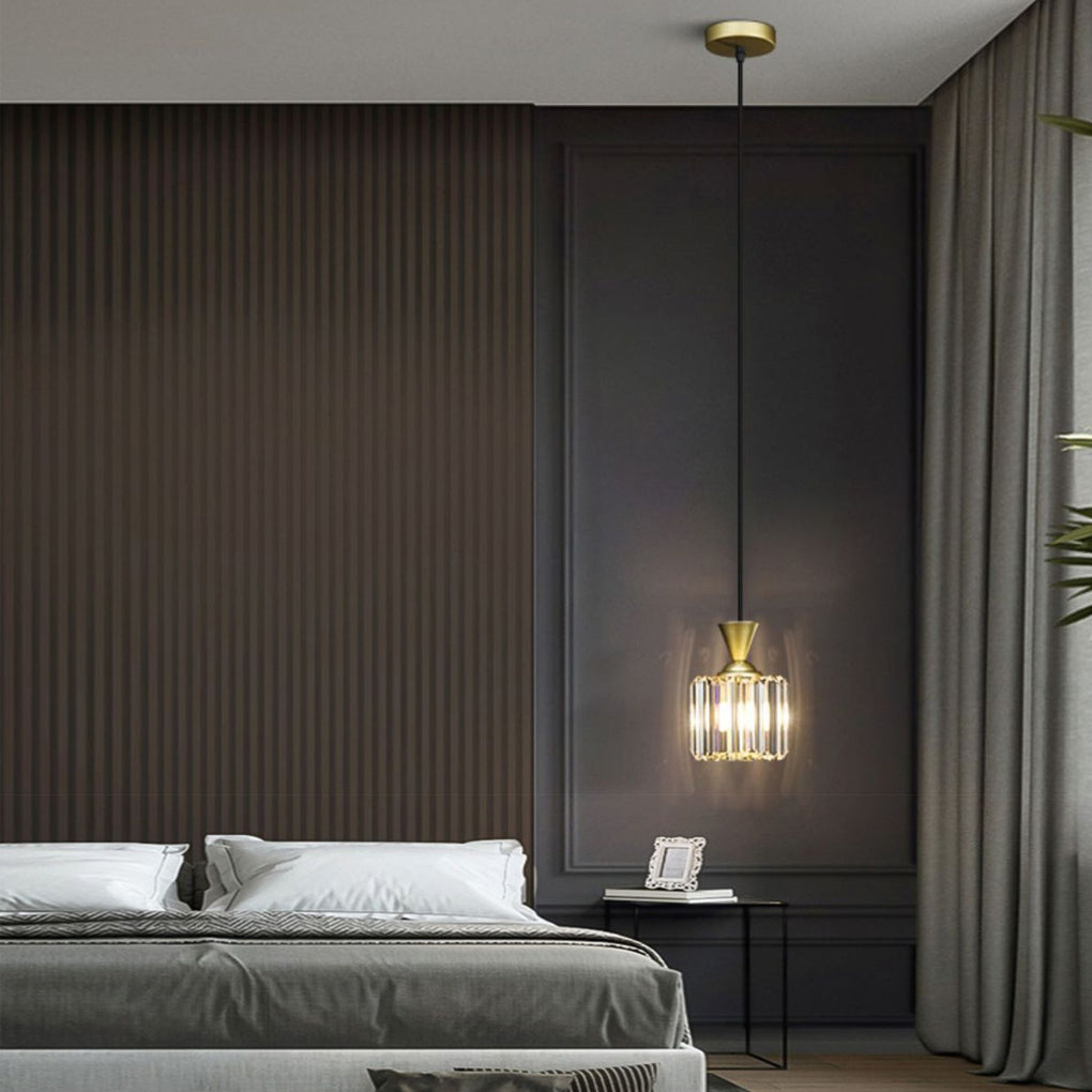 A stylish pendant light that merges modern luxury with a warm, romantic glow. Available in round or square designs, this compact chandelier pairs black and gold metal finishes with a sparkling crystal shade to create a striking focal point. Perfect for intimate spaces, it delivers both decorative flair and practical, adjustable lighting.
