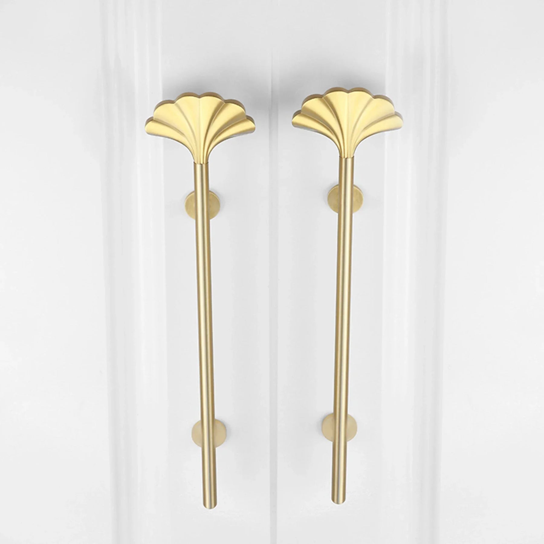 Solid Brass Ginkgo Leaf Handle – Elegant Gold Furniture Knob for Cabinets, Wardrobes, and Cupboards