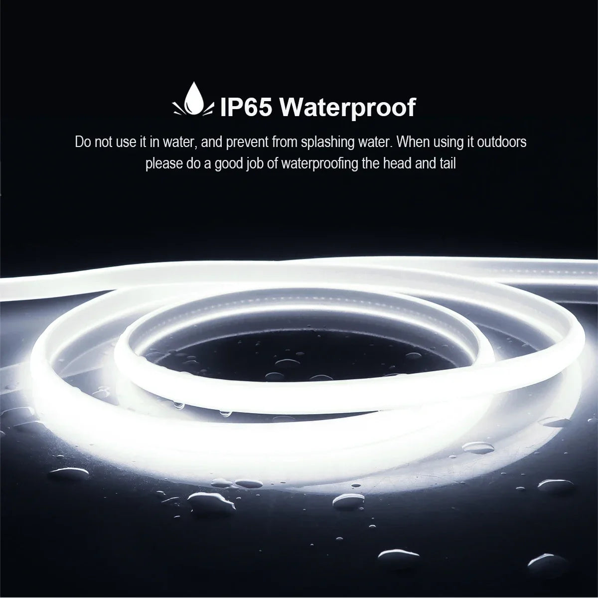 Upgrade your lighting with the High Lumen COB LED Strip Light – a premium flexible lighting solution designed for both indoor and outdoor applications. Made with a pure silicone tube for durability, this waterproof LED strip delivers uniform, flicker-free brightness with 288 LEDs per meter, making it ideal for residential, commercial, and decorative projects.