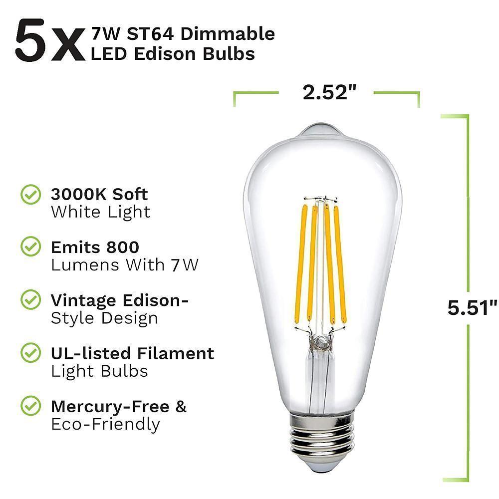 Max Wattage: 6–7W per bulb (5 bulbs total)