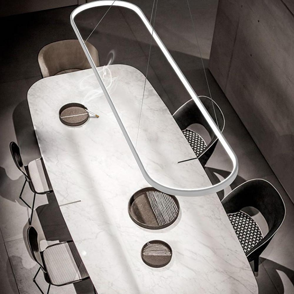 Bring sleek sophistication to your interior with this oval-shaped modern pendant light. Designed with a smooth aluminum frame and high-transmittance acrylic diffuser, it provides bright, even illumination while serving as a contemporary design statement. The integrated LED system supports warm white, cool white, and remote-controlled stepless dimming, allowing you to tailor the atmosphere to any occasion. Perfect for dining rooms, living rooms, or stylish bar areas.