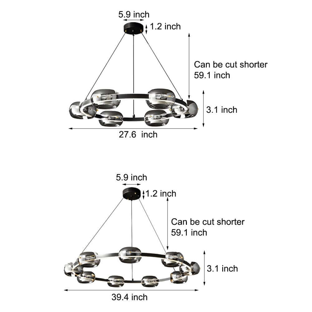 Modern Black Copper Ring Glass Sphere LED Chandelier