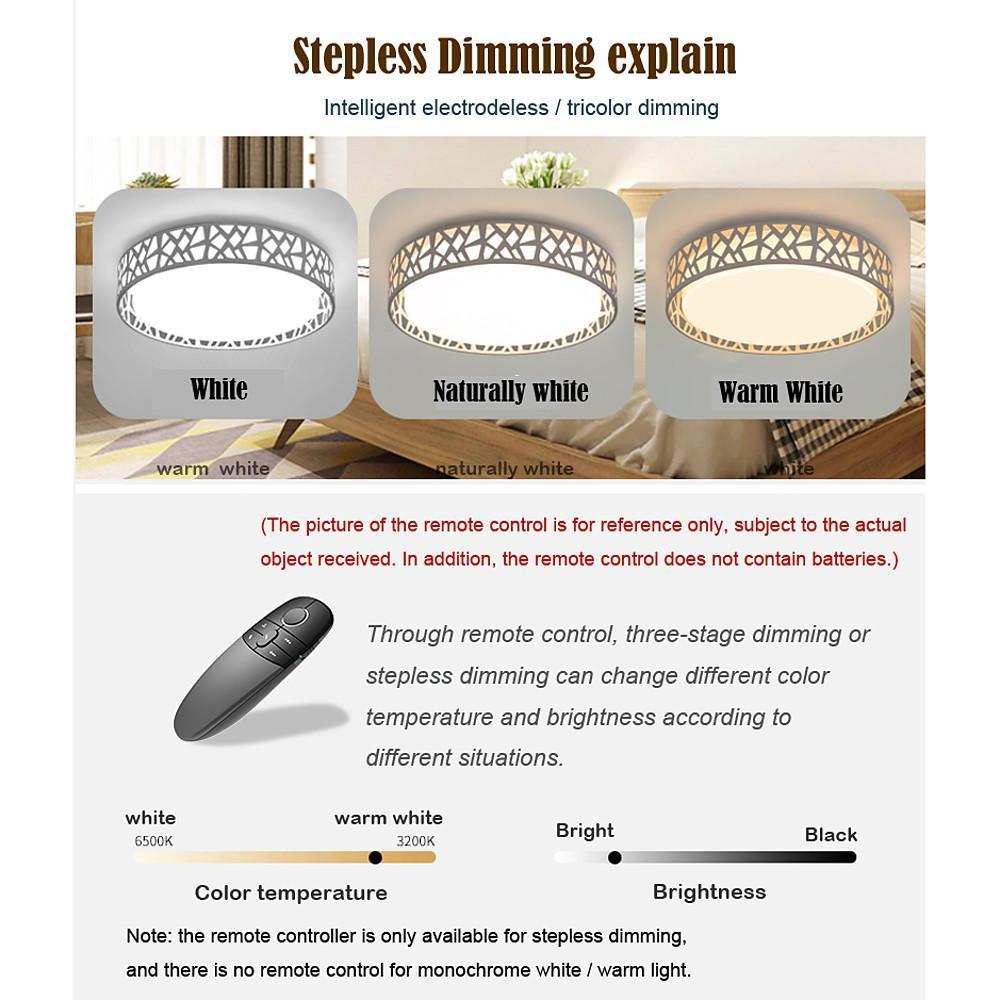• Color Temperature: Warm white 3000 K, cool white 6000 K, 3-step dimming (3000 K/4000 K/6000 K), or remote-controlled stepless dimming (3000 K–6000 K)