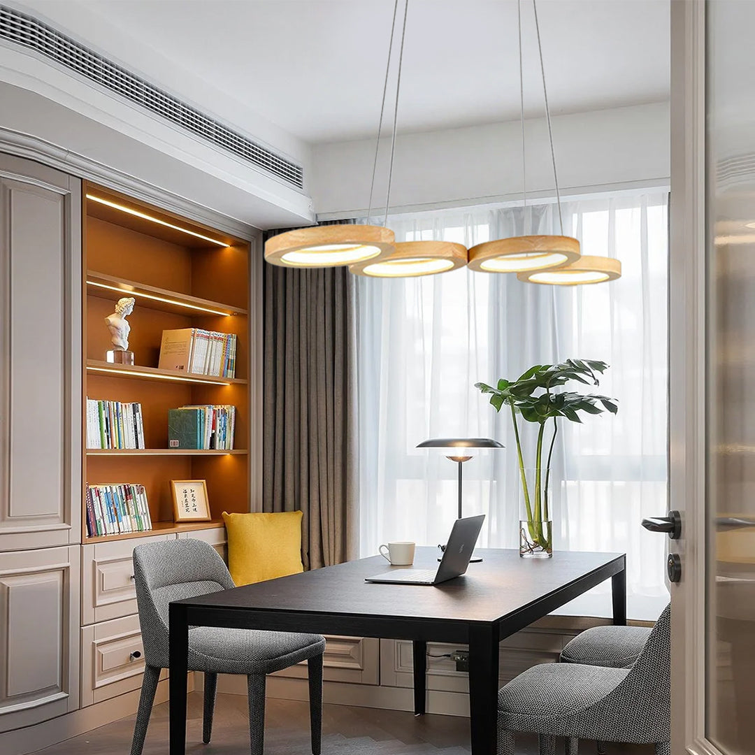 Rustic 4-Circle Wood LED Modern Chandelier