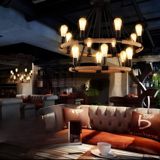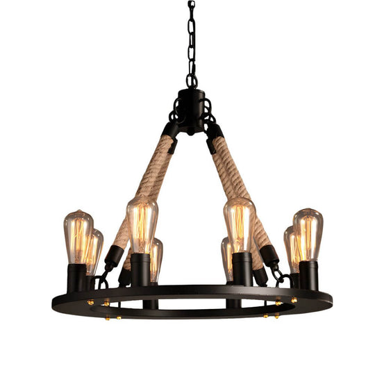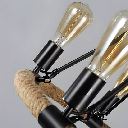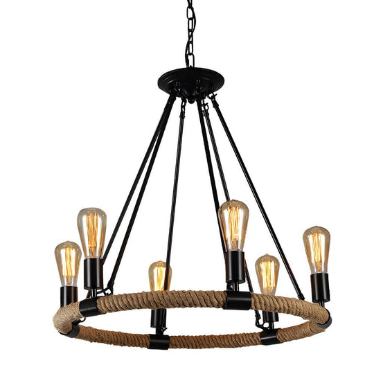 Rustic Industrial Hemp Rope Iron Frame Chandelier