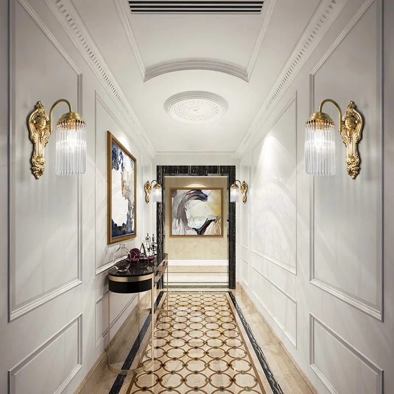 French Luxury Copper Wall Lamp Golden Crystal LED Sconce Light