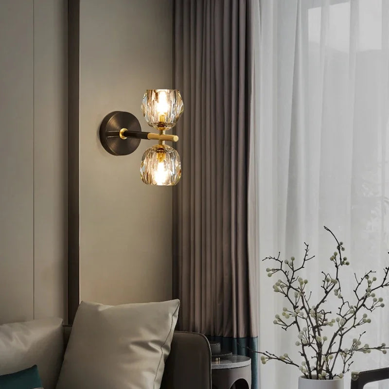 Modern Copper Wall Lamp Glass Shade Indoor Sconce for Bedroom