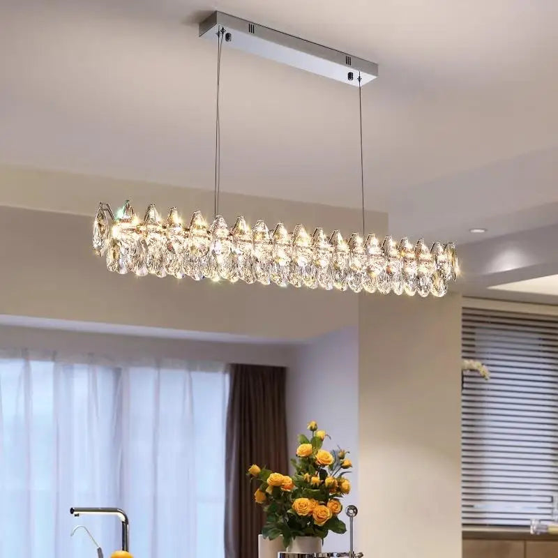 A sleek and contemporary pendant light designed for restaurants, bars, and stylish living spaces. Crafted with high-quality crystal and finished in elegant silver, this line-shaped fixture delivers refined illumination and a striking modern aesthetic.