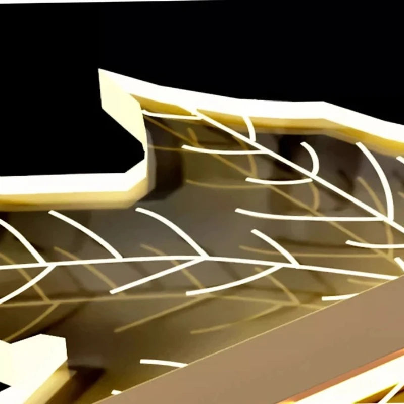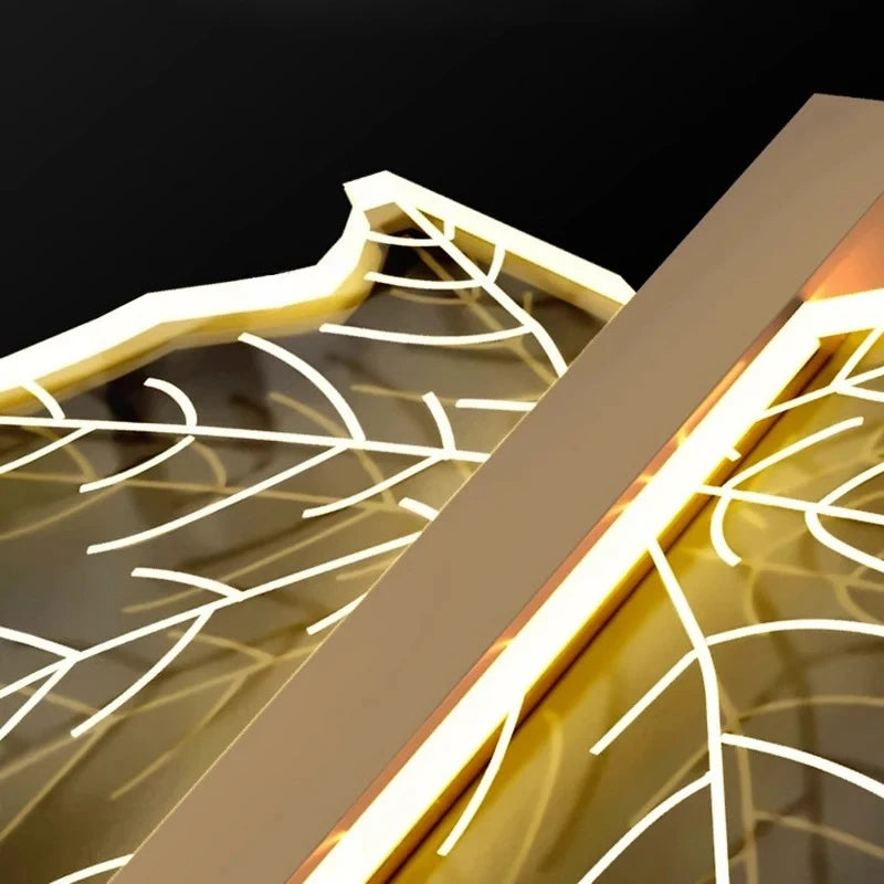 A sculptural pendant light featuring a graceful leaf-inspired design in elegant gold. Crafted from durable acrylic and finished with fine iron detailing, it delivers soft LED illumination and a contemporary touch, perfect for villas, duplex homes, hotels, and stylish staircases.