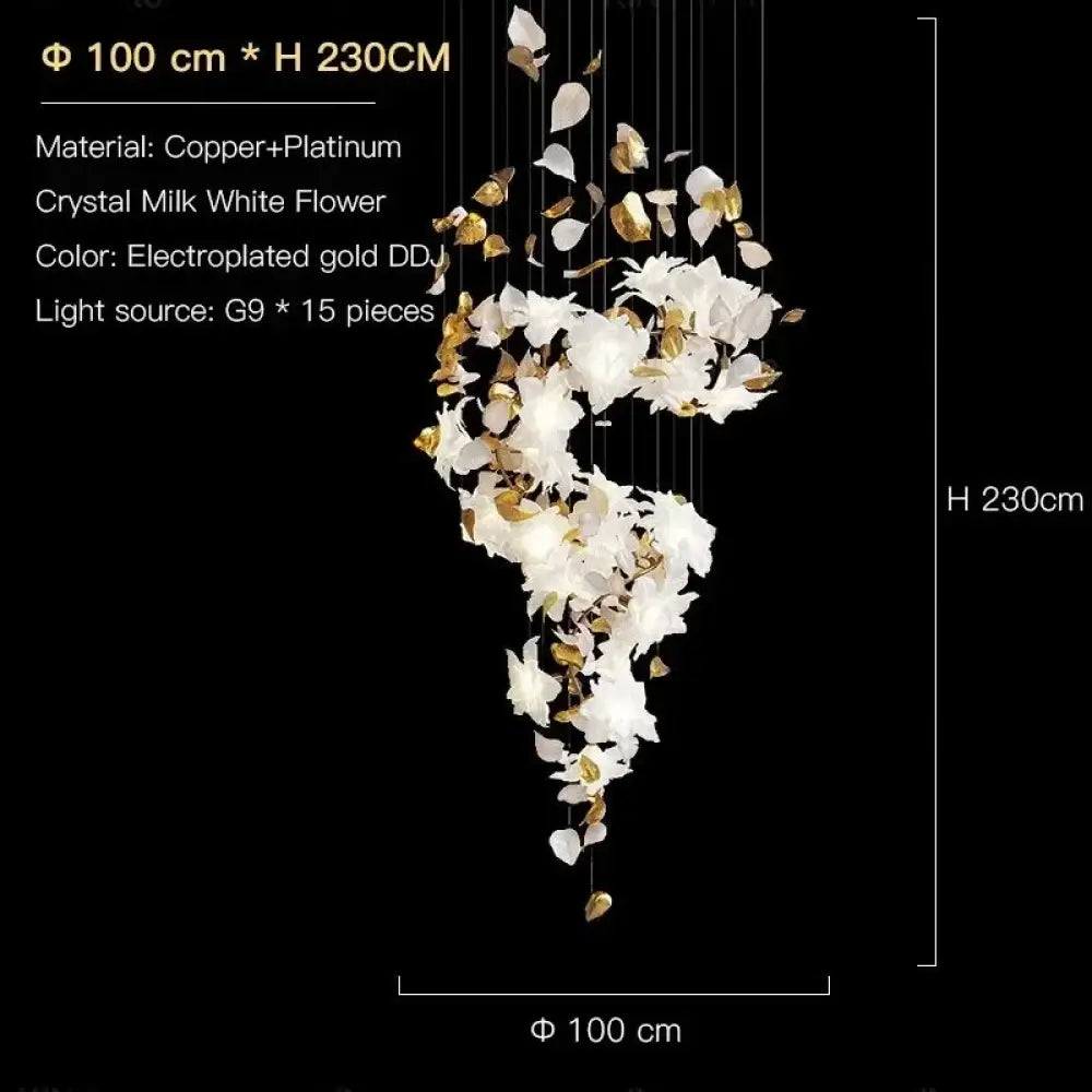 The Glass Flower Chandelier is a refined blend of artistry and modern luxury, designed to transform interiors into luminous showcases of elegance. With delicately sculpted glass petals and shimmering crystal accents, its cascading floral form captures attention from every angle. Perfect for staircases, hotel lobbies, and villas, this chandelier functions as both a radiant light source and a decorative centerpiece.