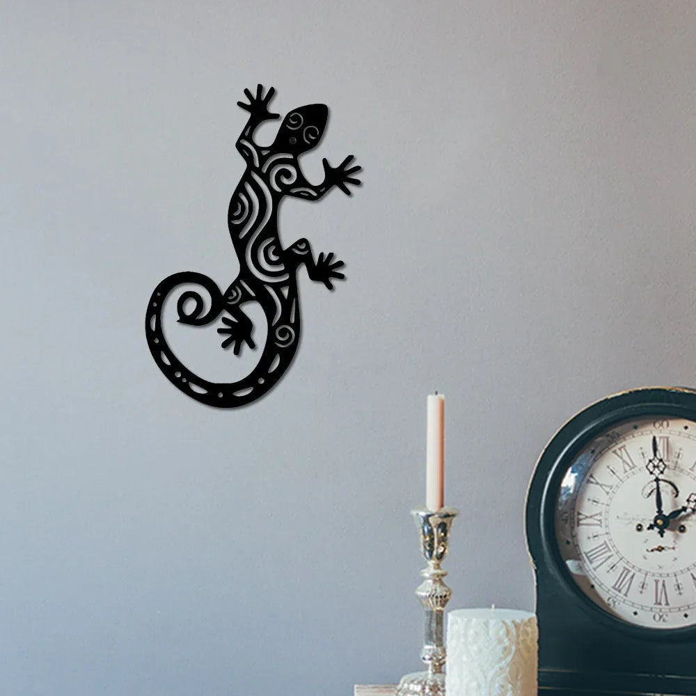 Black Gecko Lizard Silhouette Metal Wall Art Decor