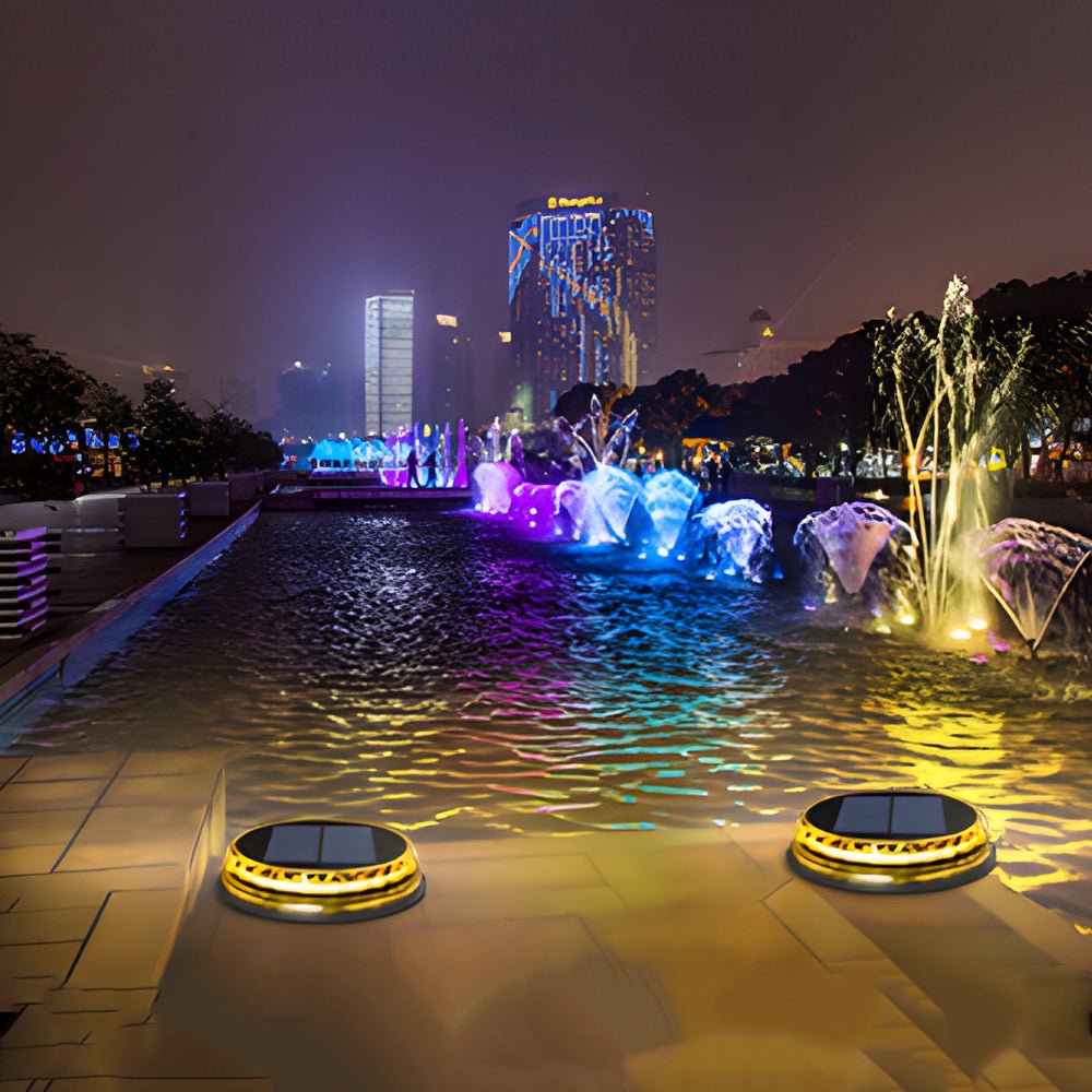 Solar Powered LED Black Disc Pathway Lights 4 Pack Outdoor Lighting