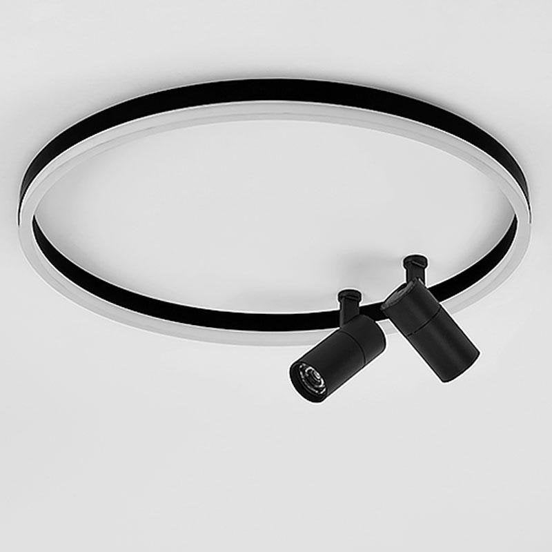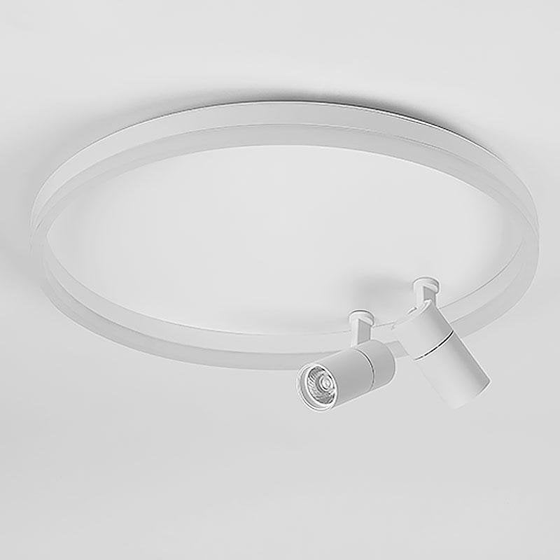 This modern flush mount light combines a clean round ceiling panel with two adjustable spotlights for flexible illumination. Crafted from high-quality aluminum and fitted with a durable PMMA shade, it resists corrosion, rust, and heat. Integrated dimmable LED compatibility allows you to control brightness and color temperature via remote, making it perfect for contemporary living rooms, kitchens, or workspaces.