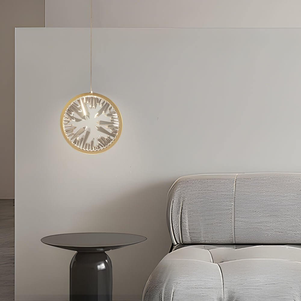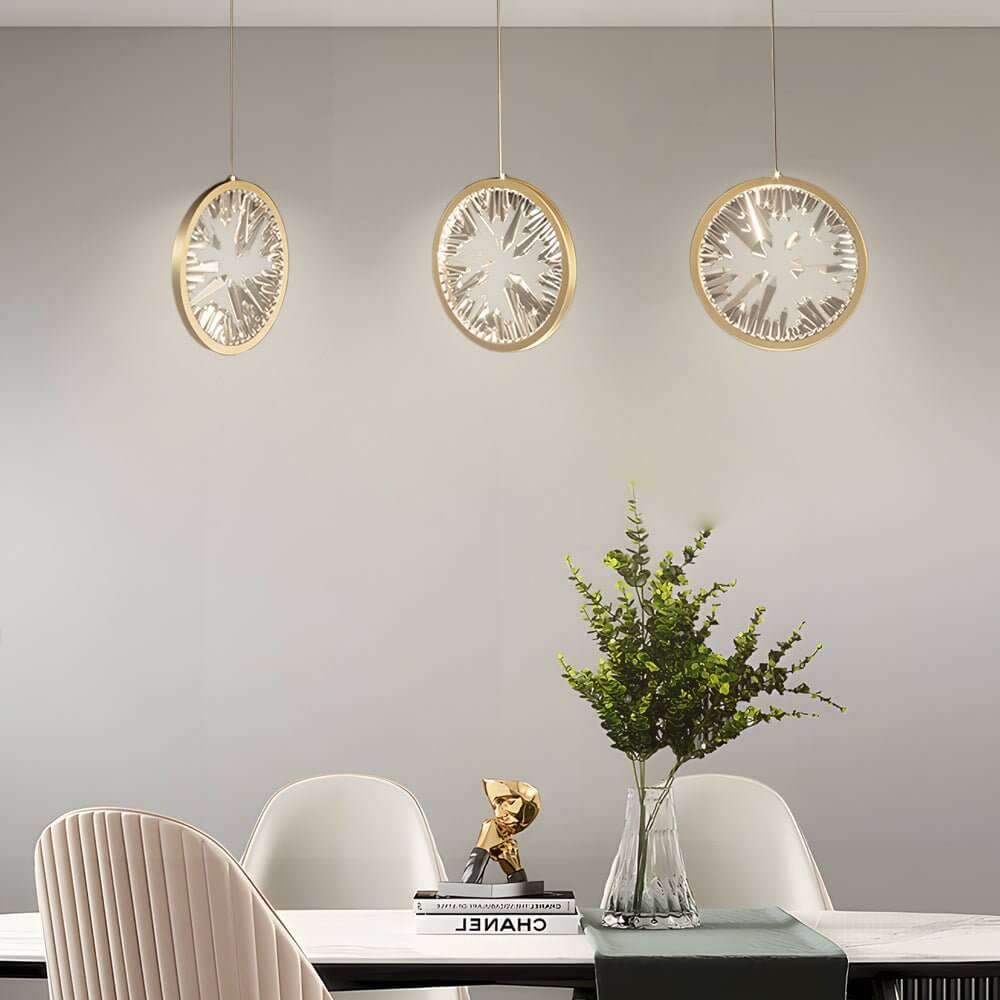 • Material & Finish: Aluminum and iron frame in gold finish; crystal and acrylic shades