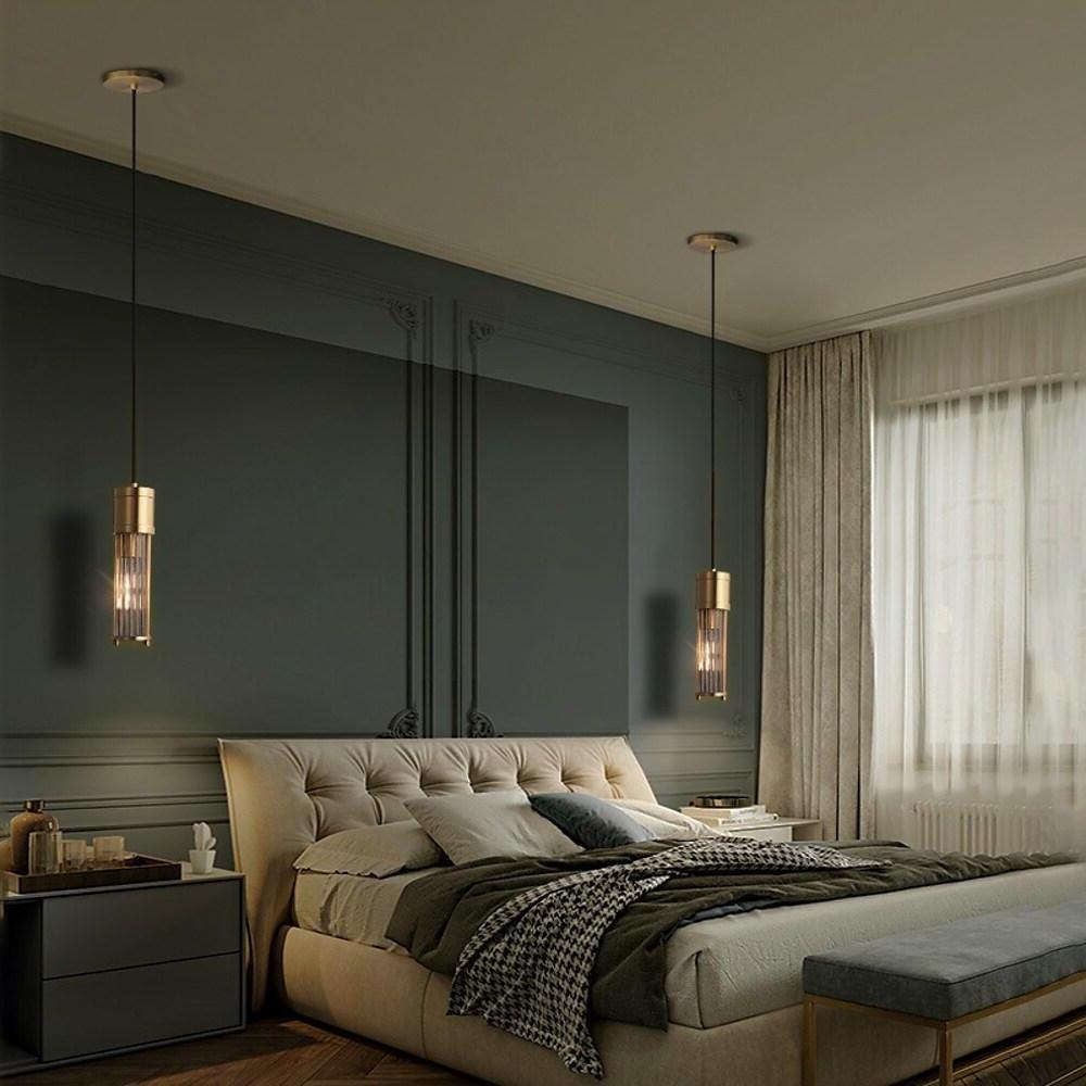 • Slim cylindrical pendant design with luxurious crystal and copper construction