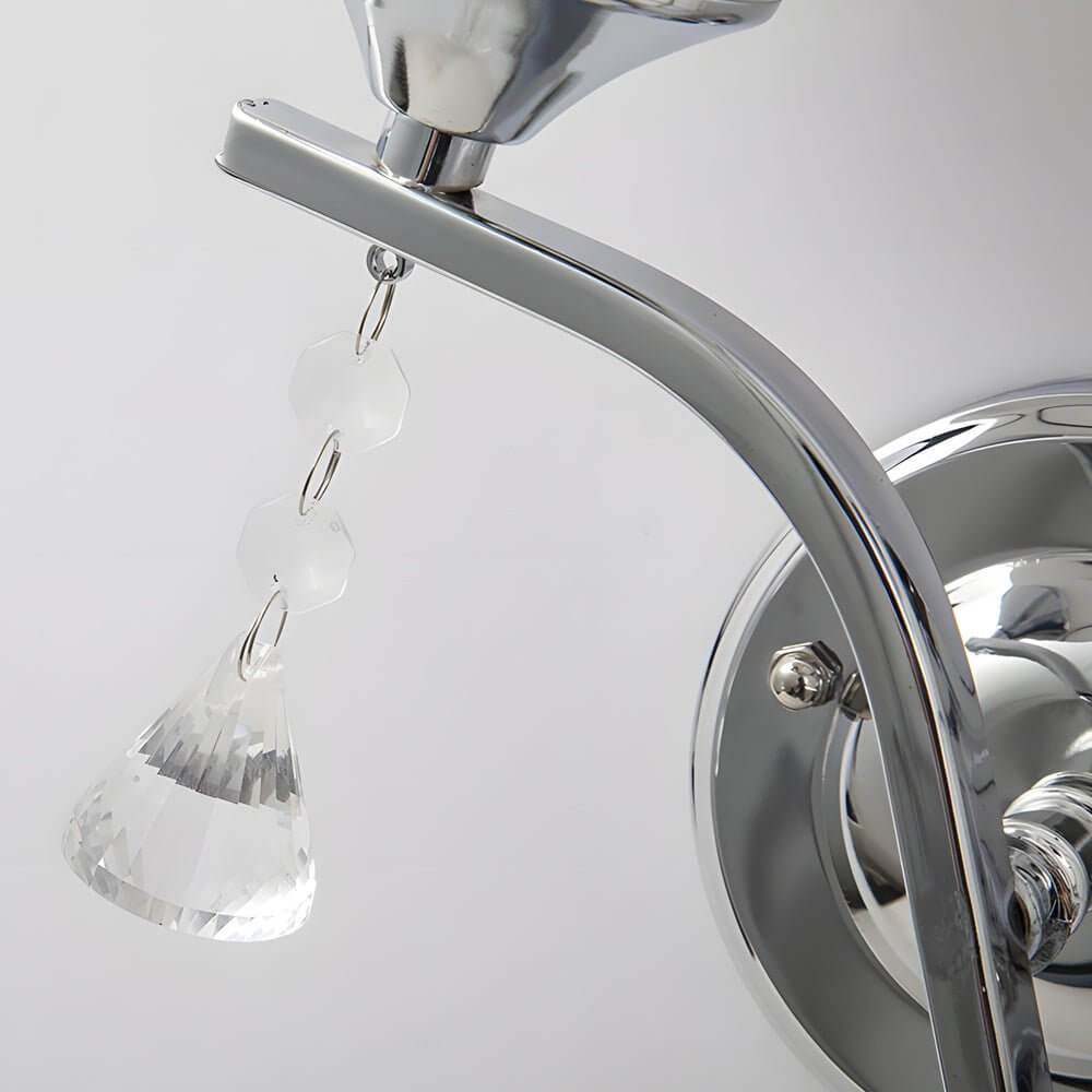 • This contemporary wall sconce blends elegance with creativity, featuring an open glass sphere shade that reveals two sparkling crystal pendants within. The pendant accents shimmer beautifully with every glow, enhancing the ambient light while adding a luxurious touch. Crafted with a sleek white metal fixture, this two-light design is compatible with E27 LED, energy-saving, or incandescent bulbs, giving you flexibility in lighting style. Perfect for bedrooms, dining rooms, living rooms, bathrooms, or hallways, it serves as both a functional light source and a striking decorative element.