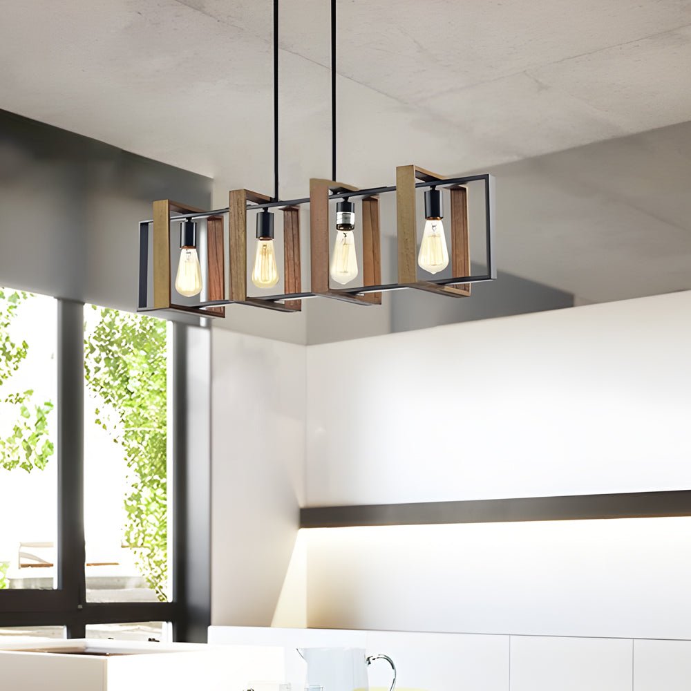 Wood Frame Creative Retro American Style Long Dining Room Chandeliers